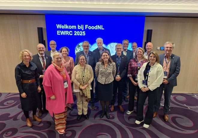 Wyno Zwanenburg sloot de bijeenkomst af met een bijdrage over FoodNL, het samenwerkingsverband van AgriFood Capital, FruitDelta Rivierenland, Greenport Venlo en Regio Foodvalley. FoodNL richt zich in het bijzonder twee thema’s: eiwittransitie en voeding & gezondheid. Hiervoor worden projecten bedacht die samen met andere Europese regio’s voor Europese bekostiging worden aangedragen.