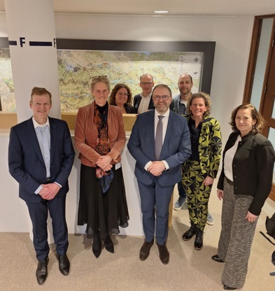 Wij ontvingen gisteren, bij Waterschap Rivierenland in Tiel, een delegatie van het Ministerie van Binnenlandse Zaken en Koninkrijksrelaties. Het gesprek stond, naast kennismaken, ook in het teken van de spreiding van de rijkswerkgelegenheid en de vraag hoe wij als Regio Rivierenland kunnen bijdragen aan deze rijksopgave. Wij waarderen het zeer dat het ministerie de tijd nam hierover in de regio met ons van gedachten te wisselen.