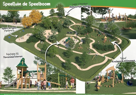 In Herwijnen wordt gewerkt aan de (her)ontwikkeling van De Speelboom: een volledig vernieuwde, natuurlijke en inclusieve speel- en ontmoetingsplek op een terrein van ruim 3.500 m². De Speelboom wordt de eerste officiële samenspeelplek in de gemeente West Betuwe waar kinderen met én zonder beperking samen kunnen spelen, ontdekken en groeien.
