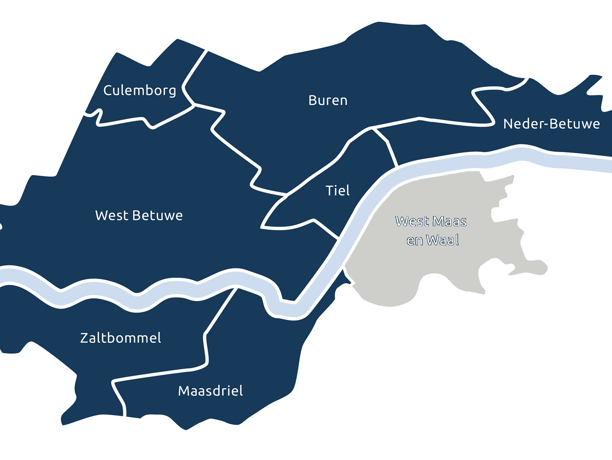 Het LEADER-gebied in Rivierenland omvat de volgende gemeenten: