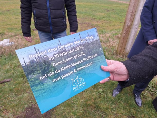 Het bezoek aan de Fruit Tech Campus werd afgesloten met een rondleiding en – als blijvende herinnering aan haar aanwezigheid – met het gezamenlijk planten van een appelboom in de tuin van de Fruit Tech Campus.