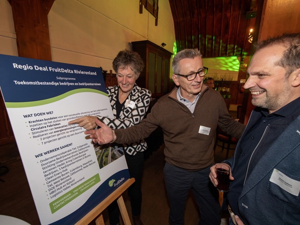 Na een plenair deel en een 'schop in de grond' door een afvaardiging van het Rijk, de Provincie en de Regio als formele aftrap, konden de gasten zich in informele sfeer verder laten informeren over de programma's en de beoogde projecten en resultaten van de Regio Deal FruitDelta Rivierenland. Optimisme en 'we gaan er samen voor' vormden de afdronk van het feestelijke evenement.