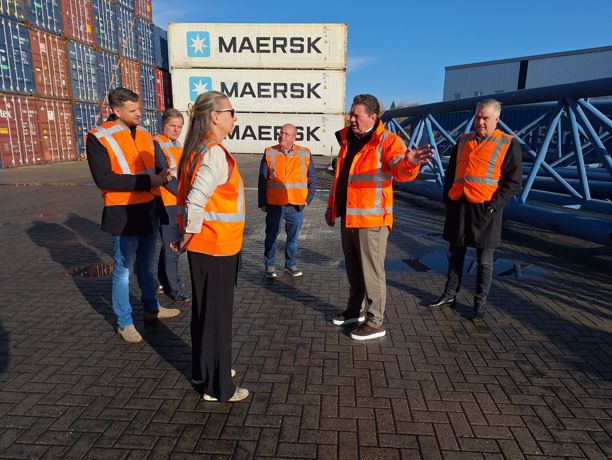 Vervolgens brachten wij een bezoek aan de Inland Terminal Tiel van Van Berkel Logistics, die de terminal een jaar geleden heeft overgenomen. Hier, langs het Amsterdam-Rijnkanaal, liet Michel van Dijk, directeur Logistics en voorzitter van de VITO - Vereniging van Nederlandse Inland Terminal Operators zien hoe weg en water op deze plek samenkomen. Zijn toelichting op de rol van multimodaliteit en de kansen voor efficiëntere en duurzamere logistiek onderstreepte hoe belangrijk het is dat deze regio wordt gezien als een sleutelgebied in het nationale netwerk: “Tiel en Rivierenland liggen op een uitermate gunstige plek en bieden veel kansen voor het versterken van deze multimodale stromen”, aldus Van Dijk. Aansluitend kregen wij een rondleiding over de terminal.